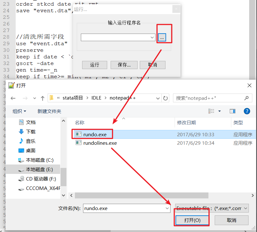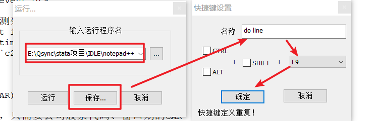 打开stata软件,利用natepad++编辑do文件, 按F9键 即运行选中代码,按F10键 即运行整个do文件。