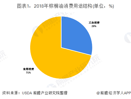 2018年,全球棕榈油消费仍以食用消费为主,占比71%。未来棕榈油将会更多用于工业生产,预计今后几年全球棕榈油的消费增长将主要体现为工业用途的增长。