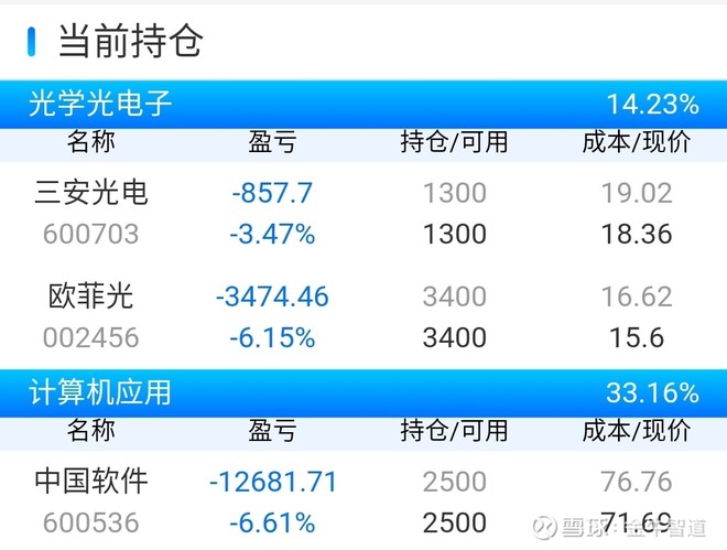 我今天的持仓有三安光电,欧菲光,中国软件。