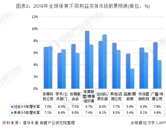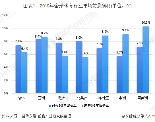 根据普华永道2019年的统计数据,全球体育行业在过去3-5年的平均增长率为7.4%,预计未来3-5年全球体育行业增长率将下降至6.4%,体育行业时候增长逐渐趋于稳定。