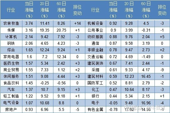 今日较强:农林牧渔、传媒、计算机