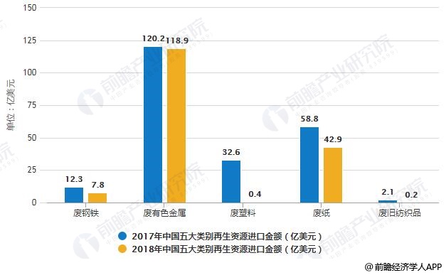 2017-2018年中国五大类别再生资源进口金额统计情况