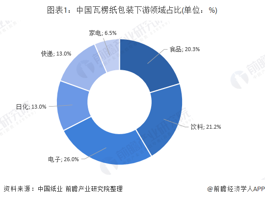 瓦楞纸包装下游主要集中在饮料食品和电子领域中