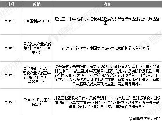 2015-2019年中国服务机器人行业相关政策汇总情况
