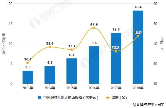 2013-2018年中国服务机器人市场规模统计及增长情况