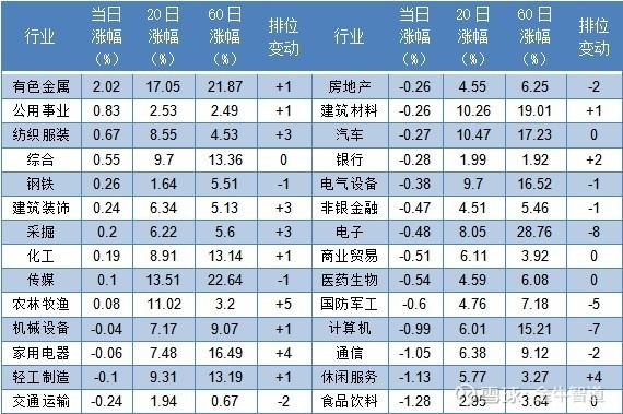今日较强:有色金属、公用事业、纺织服装