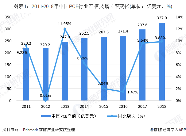 伴随着电子信息产业链迁移,作为其基础产业的PCB行业也随之向中国大陆、东南亚等亚洲地区集中。自2006年开始,中国超越日本成为全球第一大PCB生产国,PCB的产量和产值均居世界第一。