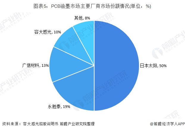 PCB用油墨专业特征明显,具有较高的技术门槛。长期以来,以日本太阳油墨为代表的国外厂商凭借着资金、技术和管理上的优势形成了对我国专用油墨行业的控制地位。目前国内 PCB 专用油墨高端市场主要仍被日本太阳等外资企业控制。