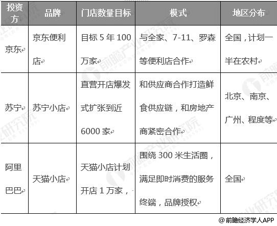 虽然我国便利店市场品牌众多,但是集中度较低。在便利店行业市场规模仍具增长空间的背景以及新零售浪潮下,连锁便利店成为资本追捧的新风口,随着线上销售增长面临瓶颈,阿里、京东、苏宁等头部电商纷纷布局线下便利店市场。京东计划5年内扩张100万家京东便利店;苏宁建立苏宁小店品牌,由实体门店和独立APP结合而成;阿里天猫小店计划开店一万家。