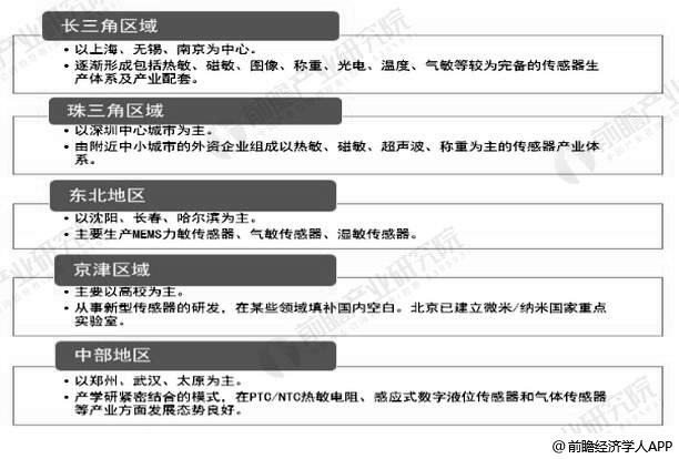 中国MEMS传感器行业产品各区域分布情况