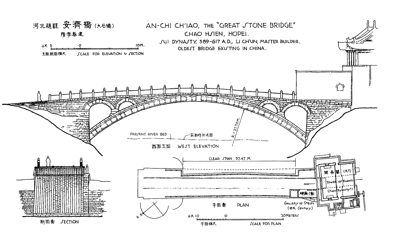 5-2 安济桥立面 断面及平面图