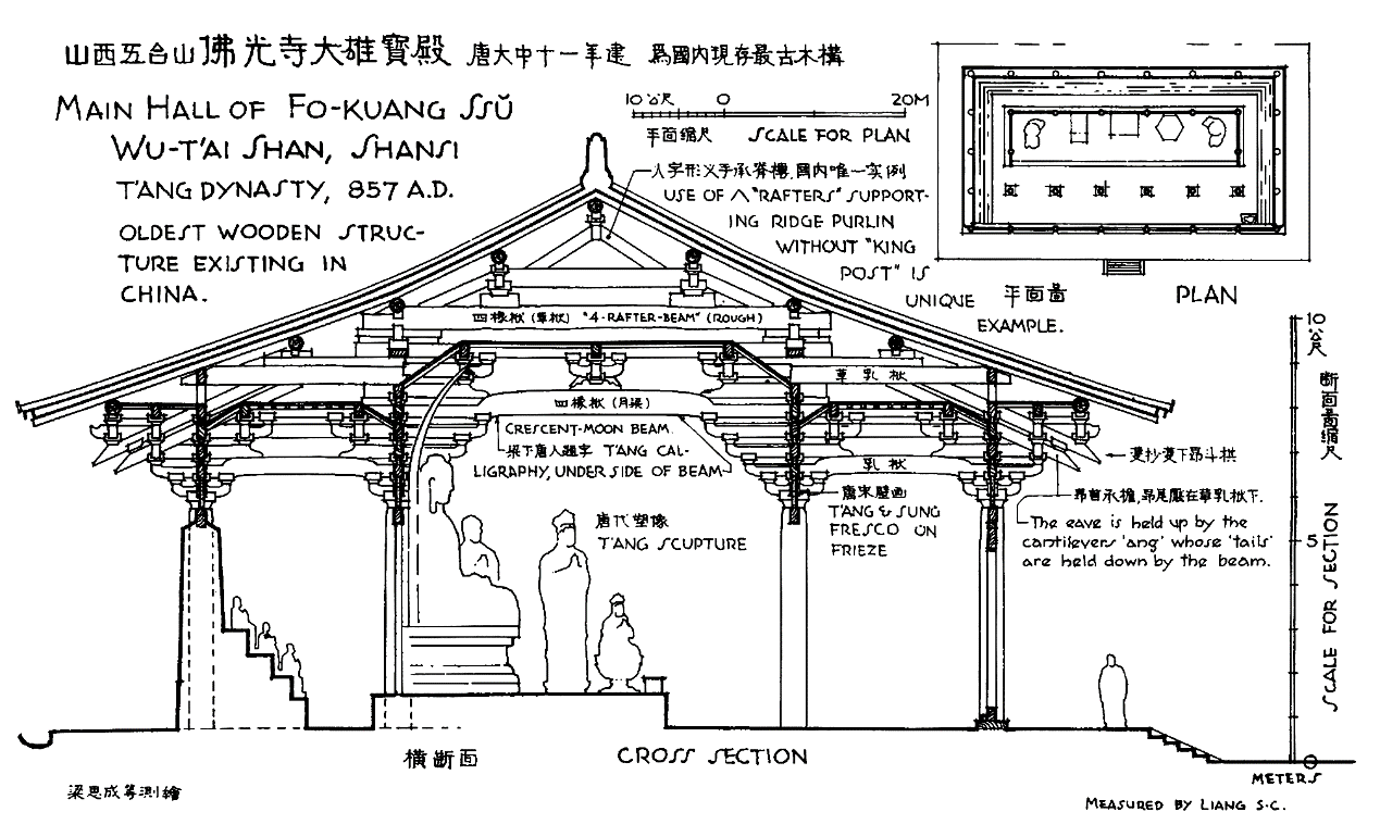 5-1 山西五台佛光寺大雄宝殿断面及平面图