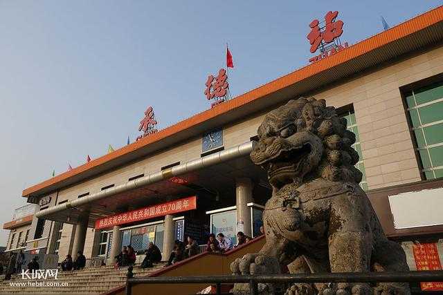 承德火车站建于1936年。承德站开通时为特三等甲级站,占地23万平方米,站前广场占地一万平方米,旅客站台二座。承德站前的两只石狮子也大有来头。据材料显示,乾隆四十二年十二月,由直隶总督周元理奏准,派刘浩负责监修热河考棚。承德老人尹忠写热河考棚时特别提到墙前两旁有一对石狮子。1941年,两尊石狮子被“请”到了承德火车站。至此,这两只一百六十多岁的石狮子,开始守护承德火车站,并将一直守护下去。