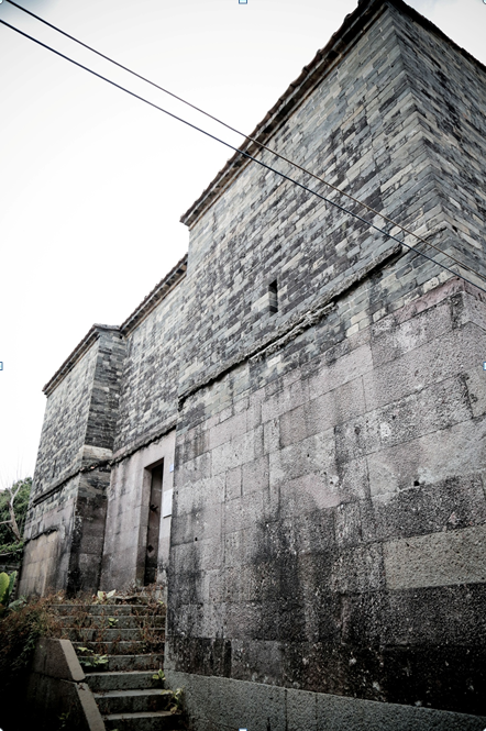 走近一看,它并不是规则的四边形,仔细地数一下,发现它居然有十二面墙,而每一面墙上都有开凿出来的炮眼。几百年前的坑贝村人,就是驻扎在这座高大威猛的碉楼里,密切地注视着四面的异常响动,捍卫它们宛如世外桃源般的家园。