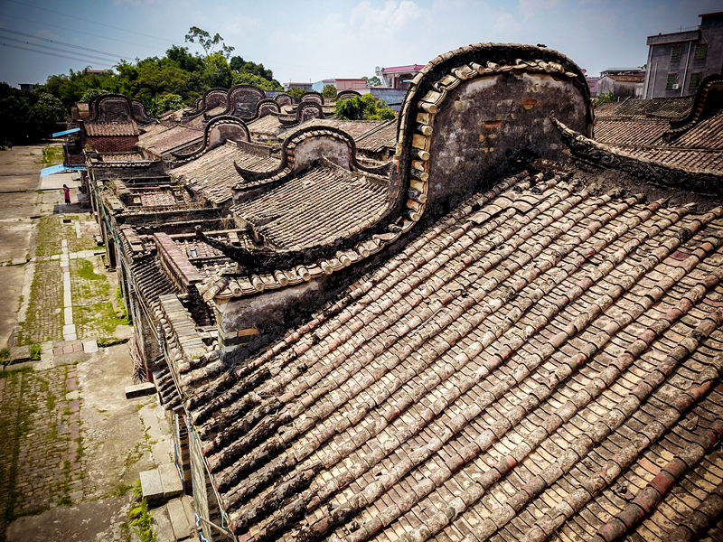 其实,这些高高耸起的“镬耳”真正的名字叫“封火墙”。过去的乡村里,到处都是禾秆成堆,极易起火,房屋之间连接紧密,一旦风助火势,火苗就很容易蹿上邻家瓦头。而大大的镬耳状山墙,可以有效阻止火势蔓延。