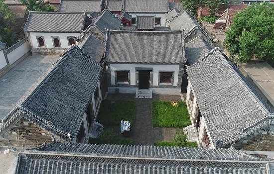 来到淄博市淄川区罗村镇大窎桥村古建筑群前,只见高大的门楼为单间双破顶,青砖灰瓦,飞檐翘角,朱红大门。走进门口,迎面是一面双檐影壁墙,中间刻有一个福字。影壁墙东西各有一个门楼,各有四合院成递进式向北延伸。四合院古朴、清雅、庄重;青砖灰瓦的房屋建筑群古色古香,干净清幽。漫步在青砖铺地的四合院里,感受着古人性情的清雅和敦厚,心里凭空多了一份恬静和素雅。