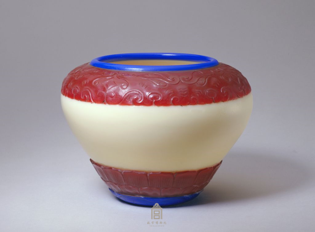 中华文博之玻璃器26--白套红玻璃莲瓣纹钵 |