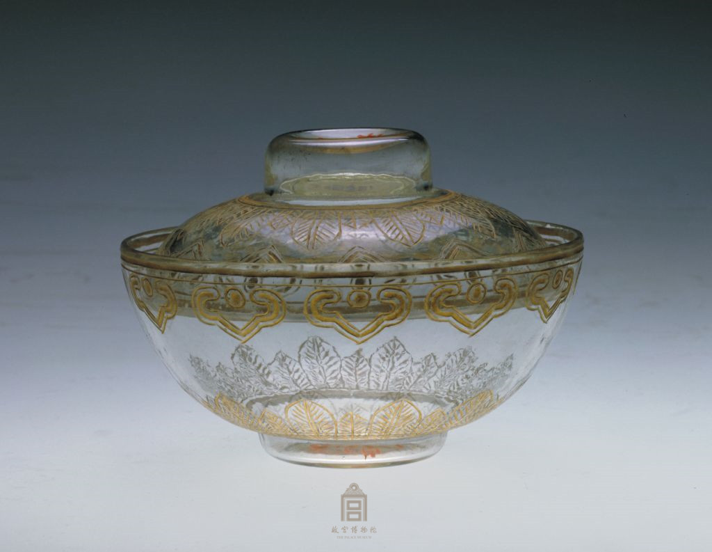 中华文博之玻璃器32--透明玻璃戗金盖碗 |