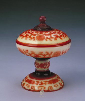 中华文博之玻璃器35--黄地套红色玻璃寿字盖豆 |