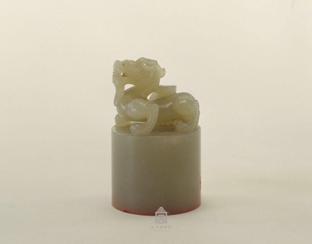 青玉质,蹲龙纽,汉文篆书。