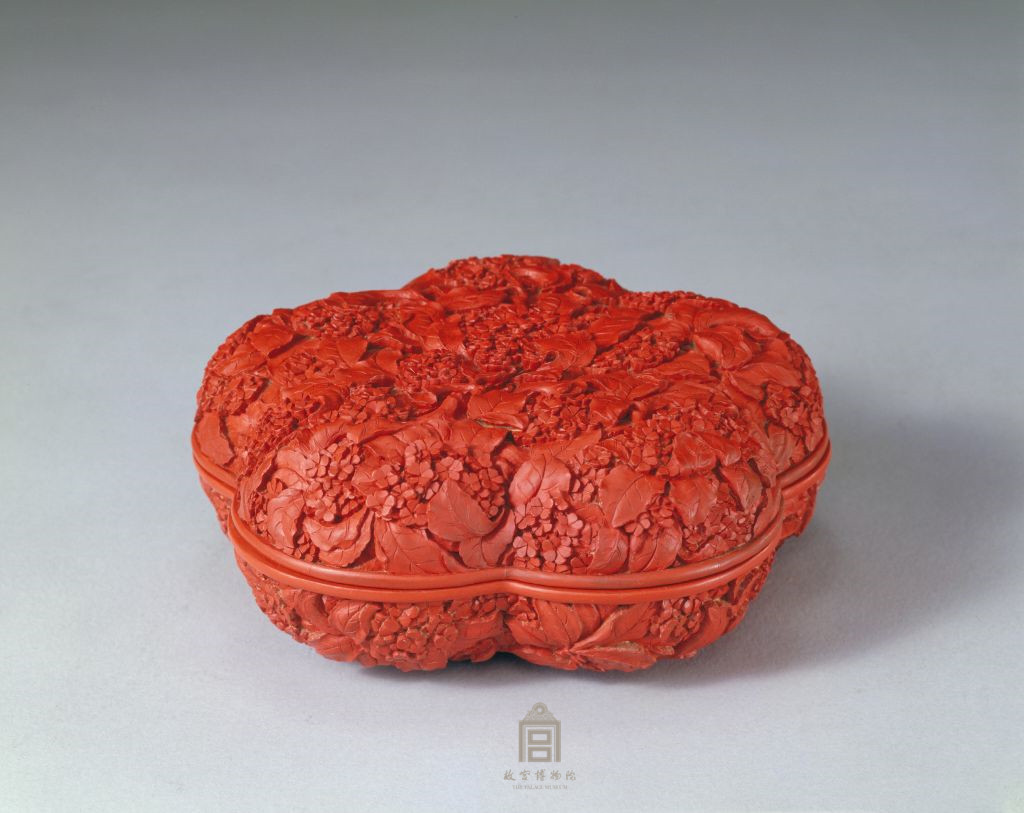 此盒漆色红妍,雕花不露地,格调清新,为乾隆朝的典型作品。