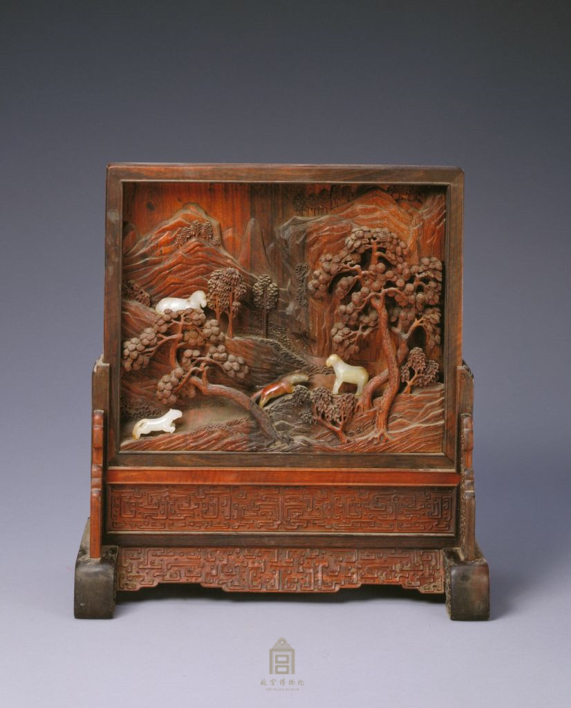 中华文博之生活器具07--紫檀边座“爱乌罕四骏图”插屏 |