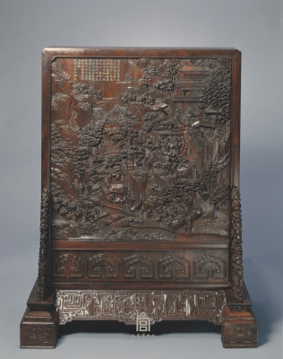 名称:紫檀雕山水八屉兰亭八柱插屏