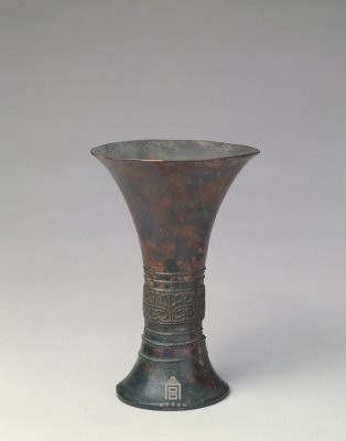 兽面纹觚形体较小,纹饰简单,颈部较短,口沿向外伸张不大,这些都是商代前期青铜觚的特点。