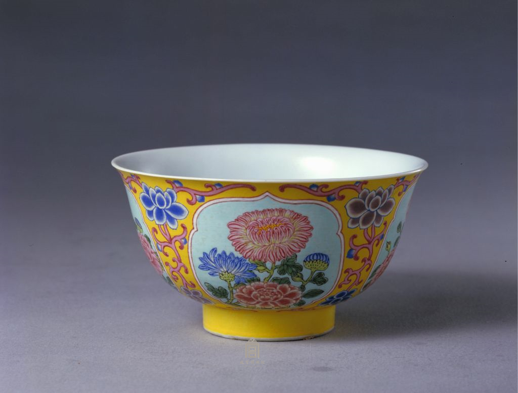 [休闲其它] 中华文博之陶瓷器34--黄地开光珐琅彩花卉纹碗 |