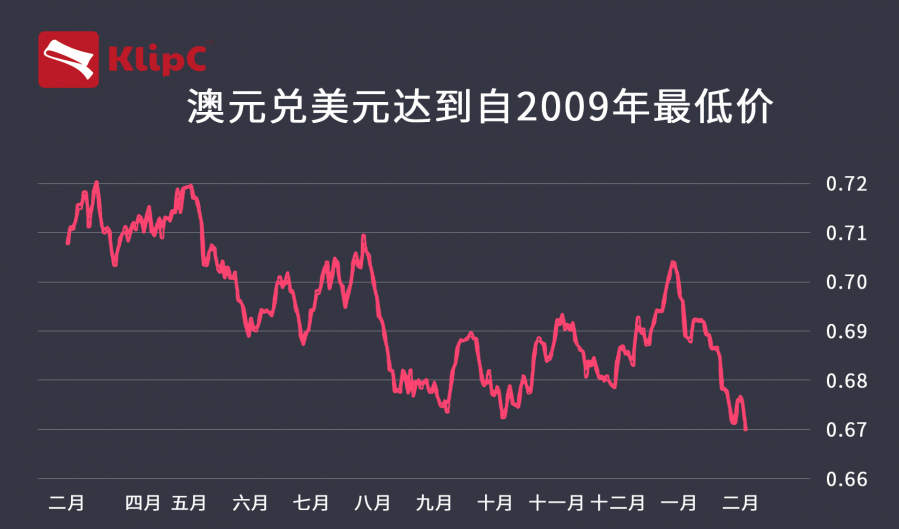 通常被视为东亚经济增长的标准,澳元周五纽约早盘交易中下跌多达1%,至0.6662美元,为2009年3月以来的最低水平。KlipC的风险经理Philip Nucci称:“如果我们在市场上看到的情况持续下去,那么这种趋势可能会继续,目前未来存在很多不确定性,我们现在还看不见曙光,不看好澳元和纽元的未来走势。”