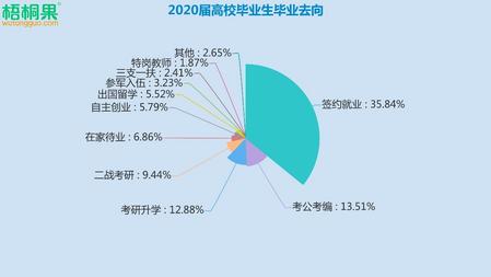 如上图所示,就业、考公、考研已经成为毕业生们重要的出路口。在调查的10万名毕业中,有35.84%的毕业生已经签订就业协议;13.51%的毕业生选择考公考编;12.88%的毕业生考研成功;还有9.44%的毕业生准备二战考研。