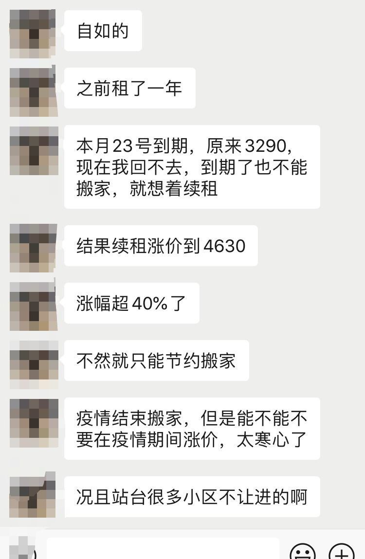 司库财经和一位坐标北京七里庄某小区的自如用户进行核实,该用户告诉司库财经: “我是自如的租客,之前租了一年,本月23日到期,原来房租3290元,现在疫情期间无法搬家,续租涨价到4630,幅度超过40%,不接受的话就以要和房东解约要挟。 我们可以等疫情结束搬家,但是能不能不要在疫情期间肆意涨价,很寒心啊,况且现在有很多小区不让进。 ”