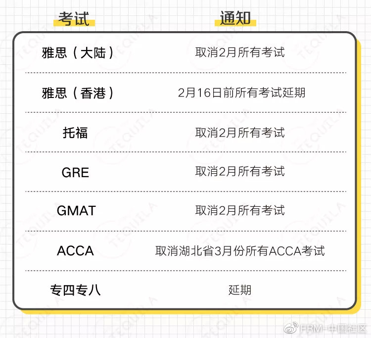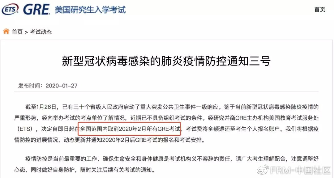 受新型冠状病毒感染肺炎疫情影响,教育部考试中心决定:将在全国范围内取消2020年2月所有雅思、托福、GRE、GMAT等报名和考试。