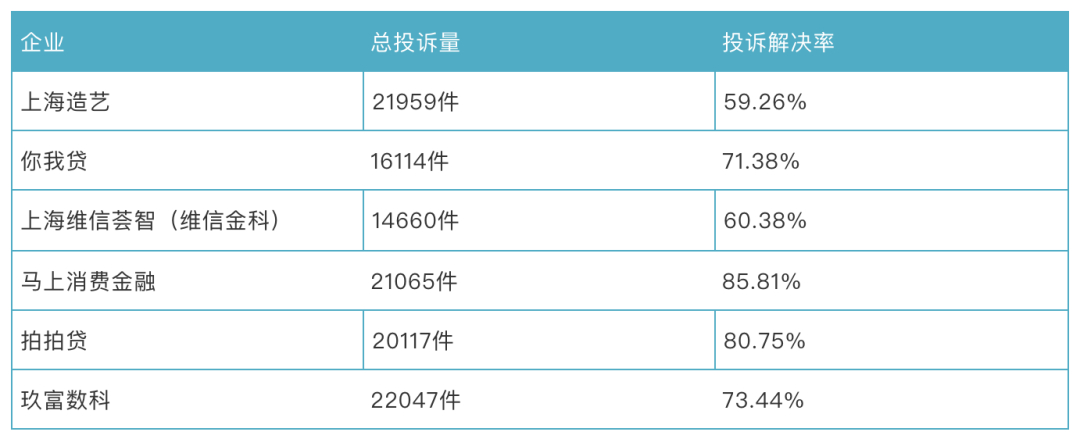 据第三方投诉平台聚投诉统计,截至2020年2月7日,上海造艺的总投诉量已经接近22000件,高达21959件,解决量为13013件,解决率为59.26%。据财经网统计,与同类助贷平台相比,上海造艺的投诉数量明显更高,而解决率则更低。