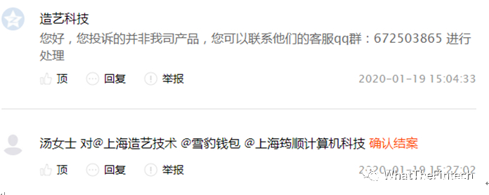 造艺科技也以该产品非我司产品的理由向不知情的用户回复,以此来推脱责任。