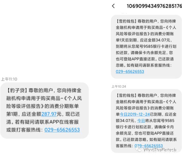 但也有部分用户了解情况,直接就在投诉中提到,现在的雪豹钱包就是以前的豹子贷。同时,根据用户提供的扣费短息可知,豹子贷及雪豹钱包的客服电话为同一个。