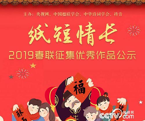 由央视网联合中国楹联学会、中华诗词学会等共同举办的“纸短情长——2019春联征集”活动,旨在抒写新时代,凝聚正能量,为广大人民群众送上新春祝福和文化大餐。