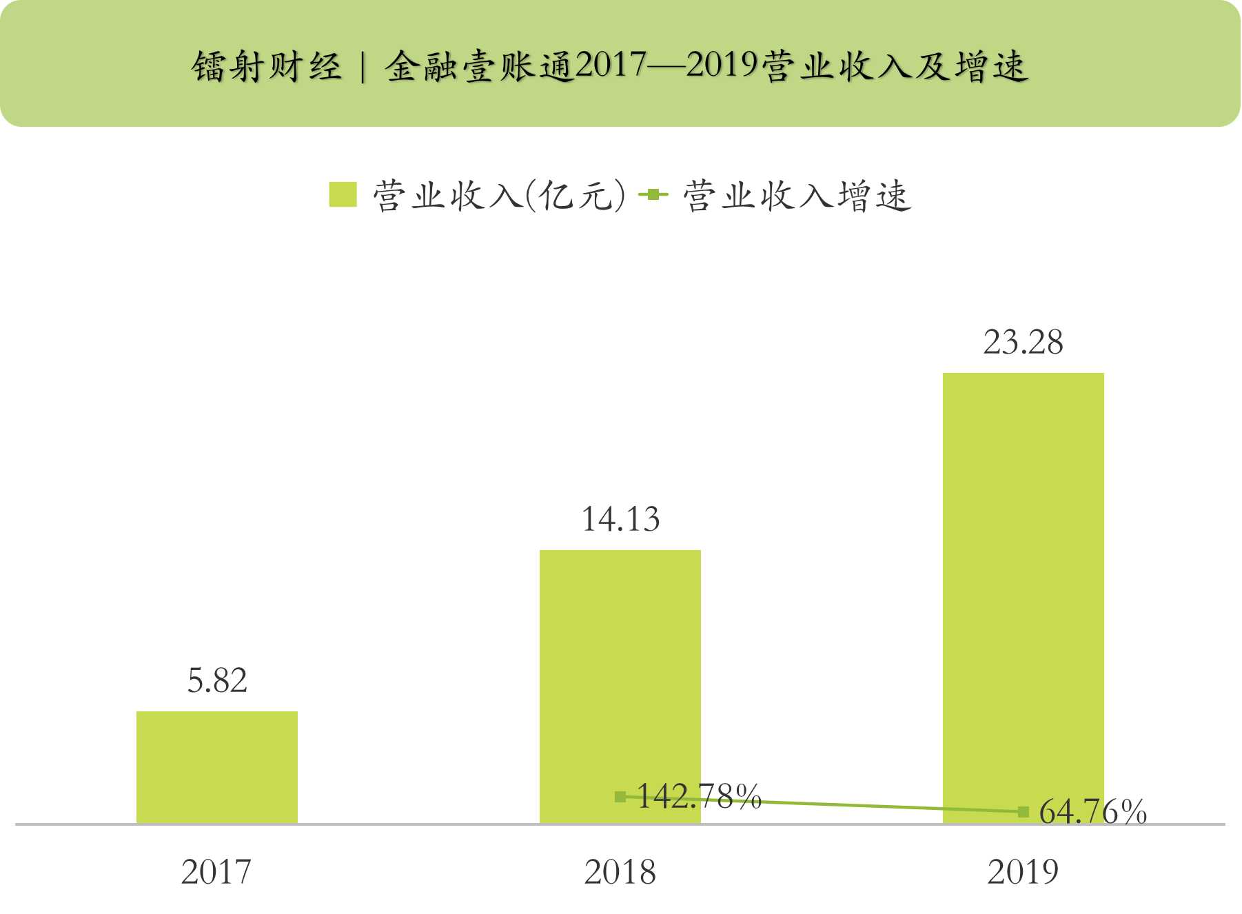 公开数据显示,金融壹账过去三年营收呈现出增长趋势,2017年营收为5.82亿元;2018年营收为14.13亿元,同比增长142.78%;2019年营收为23.28亿元,同比增长64.76%。