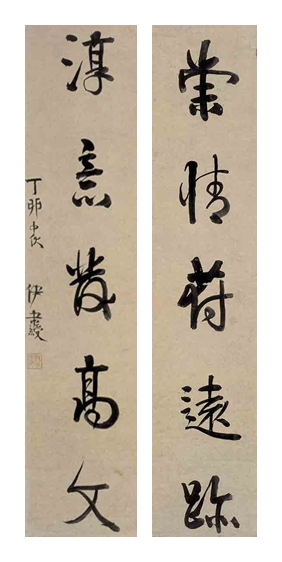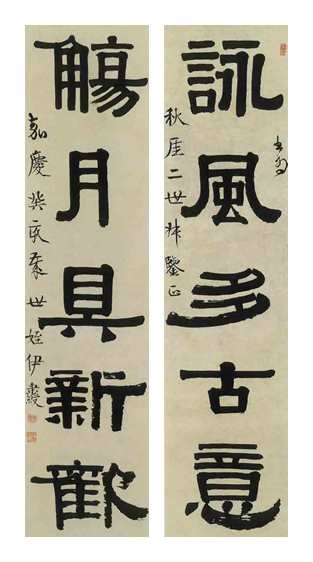 行书五言联, 123×30厘米,见《伊秉绶书法精品选》,西泠印社出版社2013年出版。