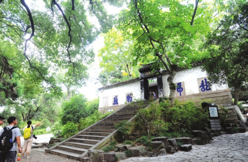 拥翠山庄,位于虎丘二山门内西侧,总平面呈长方形,占地一亩余,此园依山筑屋,层造而上,各建筑之间点缀峰石花木,有小园林之胜。山庄结合地形,巧借园外景物,布局灵活,视野开阔。在此可仰视虎丘塔,远眺狮子山,俯览虎丘山麓一带秀丽风景,别有情趣。