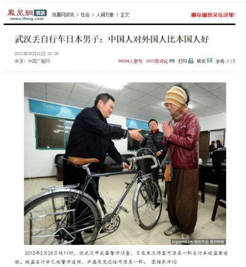2012年,一个环游世界的日本人在武汉丢了自行车,武汉发动了不少警察,连夜帮他把自行车追回。然而我自己在上海丢过不少自行车,也都报案了,但从来没有一次找回来过,有一次甚至警察对我说“大概率找不回来了,买个新的吧。”
