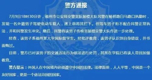 2019年,一个外国留学生在福州街头用电动车违规载人,和交警发生肢体冲突——这放在哪,都是妥妥的袭警。