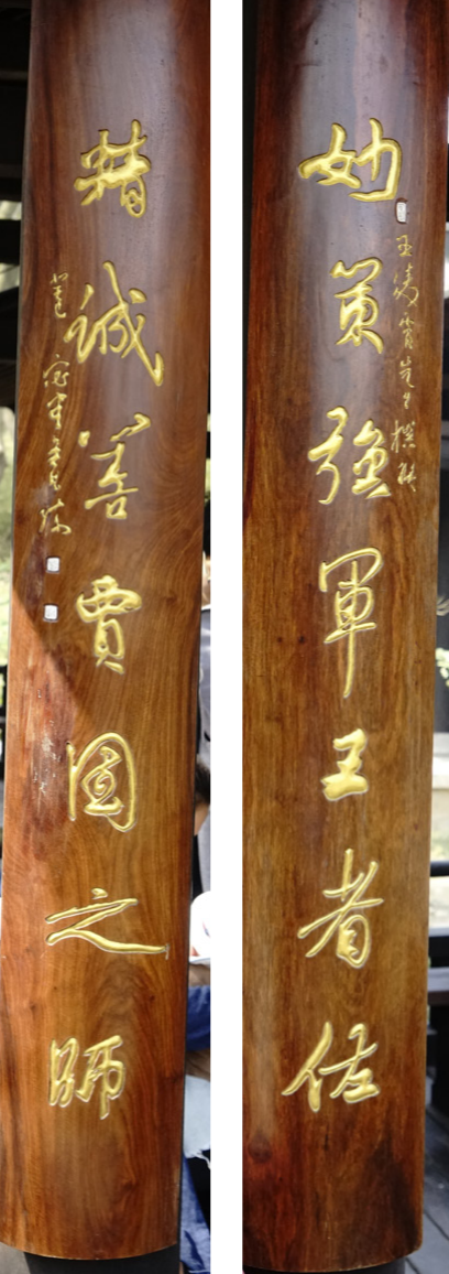 解读:此联颂范蠡功绩。上联说他以高妙的策略使越国的军队强大,是勾践的得力辅佐者。下联说他的精诚敬业,使其成为最好的商人,更堪为一国的师表。