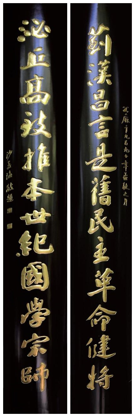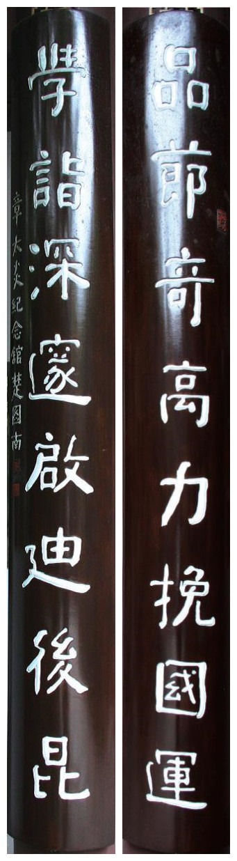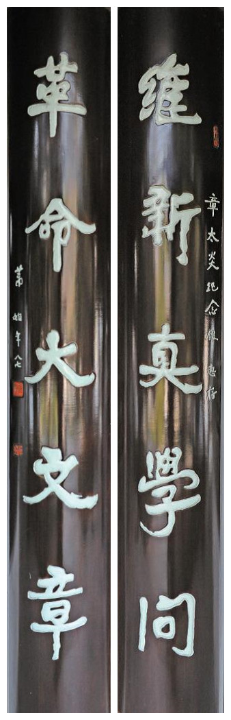 【解析】联语似从“世事洞明皆学问;人情练达即文章”化出,用以赞颂章太炎在政治上的贡献。世人皆知章太炎是大学问家、文章高手,但他所从事的革命事业, 是更好的学问、更大的文章。