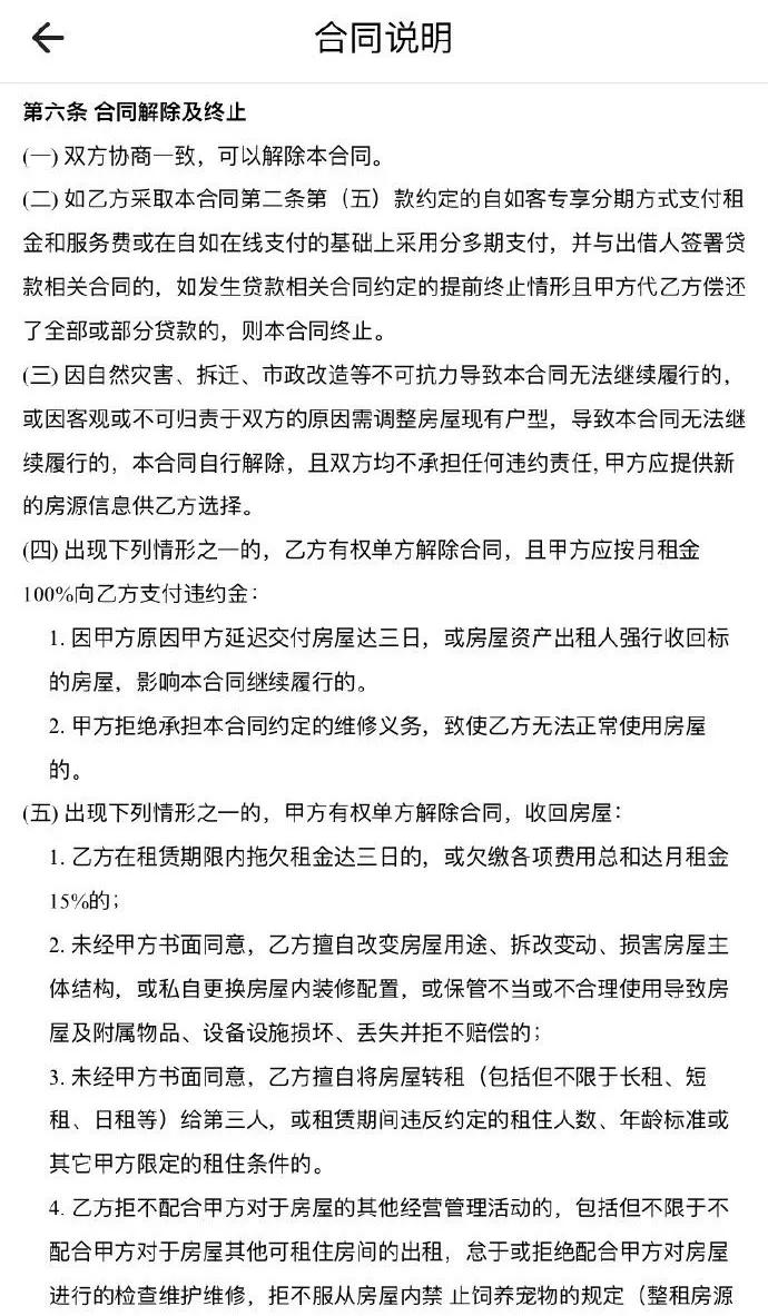 镭射财经注意到,在自如与租客签订的合同中,并无强制冻结门锁这一说明。先冻结门锁后告知租客,这一行为无疑在合同规定之外。