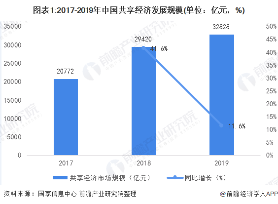 2020年3月4日,国家信息中心发布《中国共享经济发展年度报告(2020)》,报告中公布的数据显示,由于受到国际国内宏观经济下行压力加大等多种因素影响,共享经济市场交易规模增速明显放缓,2019年我国共享经济市场交易额约为32828亿元,同比增长11.6%。
