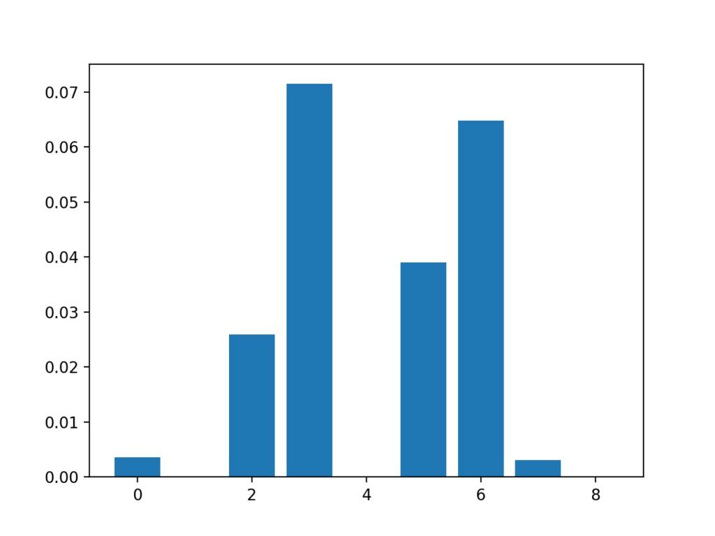 这清楚地表明,特征3可能是最相关的(根据卡方),并且九个输入特征中的四个也许是最相关的。