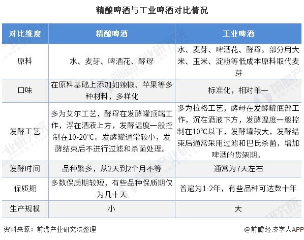 精酿啤酒的定义最初来自于美国,相对于工业啤酒,精酿啤酒主要采用艾尔工艺,上层发酵,可在原料基础上添加苹果等多种材料,口味多样化,在新鲜度和口味上更胜一筹,成为高端啤酒市场的代表产品。