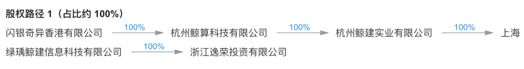 2019年11月19日,原本持有逸荣投资100%股份的杭州亚当投资管理有限公司退出,逸荣投资成为上海绿瑀鲸建信息科技有限公司(下称:绿瑀鲸建)全资子公司。12月25日,闪银奇异的全资孙公司杭州鲸建实业有限公司100%控股了绿瑀鲸建。