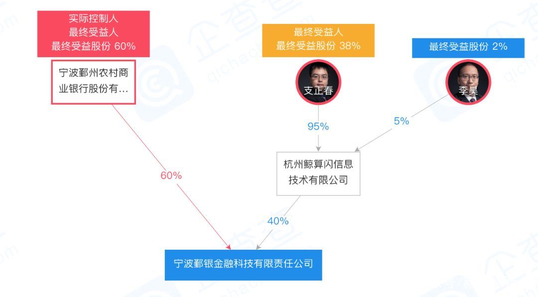 2018年8月29日,鲸算闪与宁波鄞州农商行共同成立宁波鄞银金融科技有限责任公司(下称鄞银金融科技)。宁波鄞州农商行持股60%,为大股东,鲸算闪持股40%。